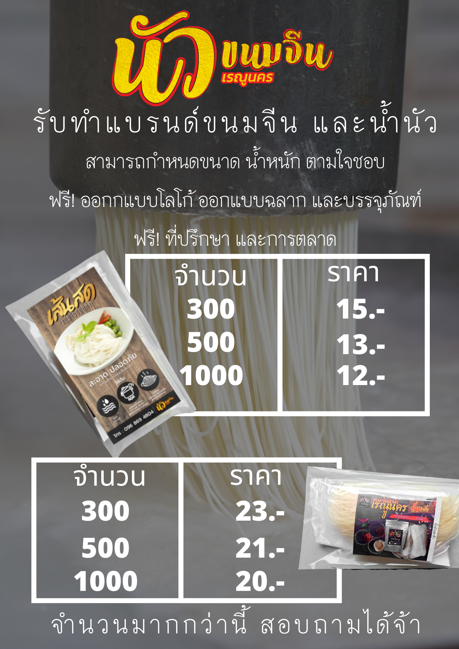 รับผลิตสินค้าขนมจีนอบแห้ง ในแบรนด์ตัวเอง สั่งซื้อเป็นกิโลกรัม ตามร้านอาหาร