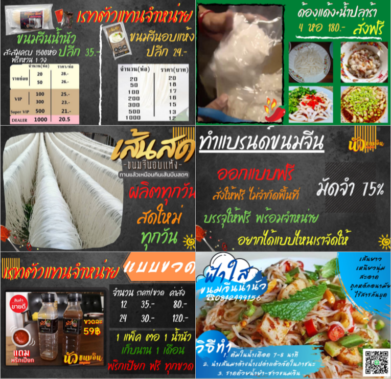 เป็นตัวแทนขายเส้นขนมจีนอบแห้ง ตามตลาดประจำจังหวัด ประจำอำเภอ