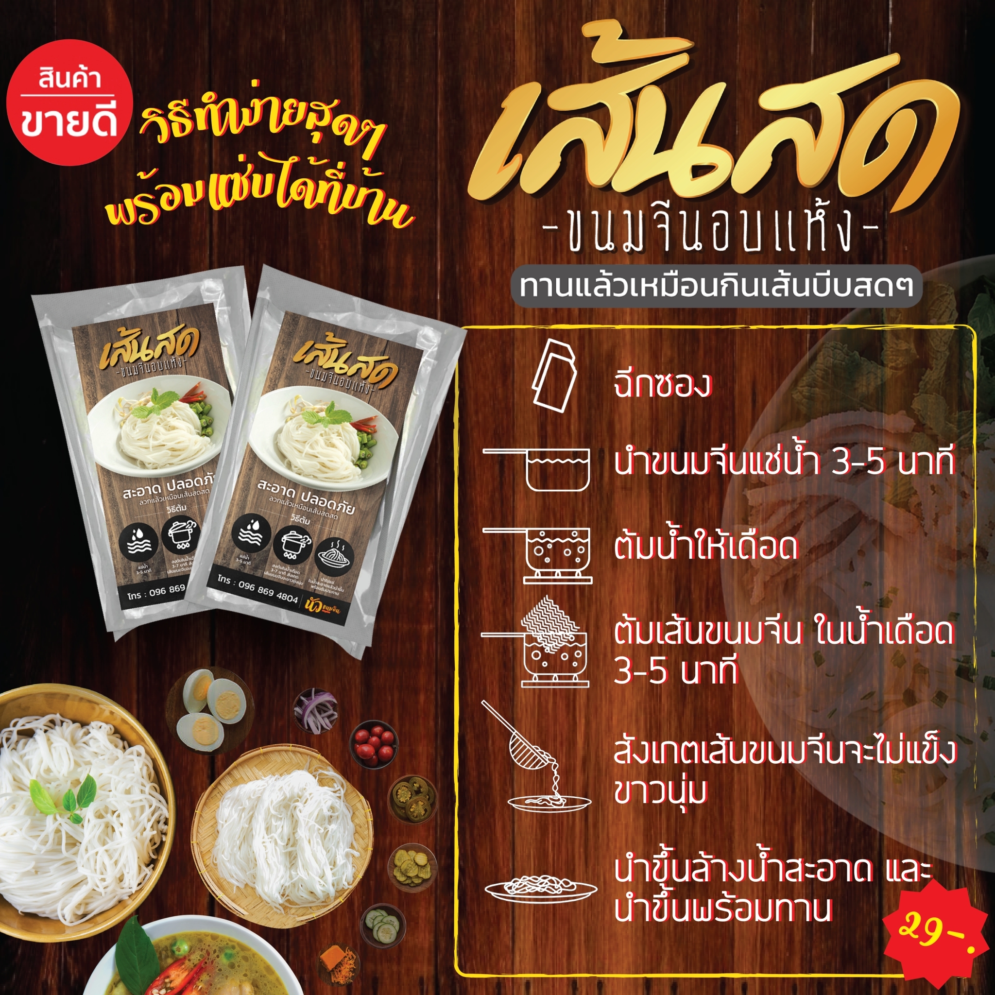 เส้นสด ขนมจีนอบแห้งมจีน เก็บได้นาน 1 ปี หิ้วไปต่างประเทศได้ |